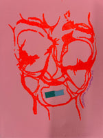 Mini unique handmade painting in dk. green colour with nude screen print of a mask.