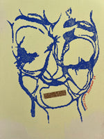 Mini unique handmade painting in nude colour with Brown screen print of a mask.
