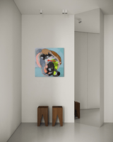 - Akryl på lærred: Kunstværket er malet med akrylmaling, der giver klare farver og en sanselig, levende overflade.
