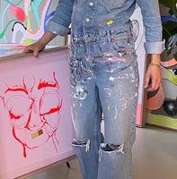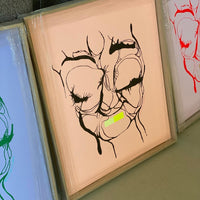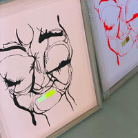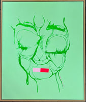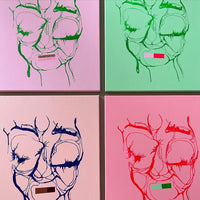 Unikamaleri på lærred med serigrafitryk af abstrakt ansigt trykt med maling. Håndmalede. I lækker eksklusiv 4,5 cm dyb egetræsramme.