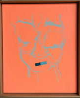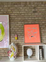 Unikamaleri på lærred med serigrafitryk af abstrakt ansigt trykt med maling. Håndmalede. I lækker eksklusiv 4,5 cm dyb egetræsramme.