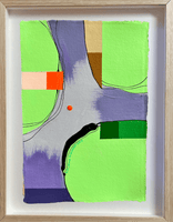 This minimalist Scandinavian painting is made on handmade Indian paper, where the aqua green bluish background with the brownish motif forms a cool and eye-catching base for the graphic, colorful motif. The painting balances between abstract and graphic expression, where the bright colors and simple composition draw the eye towards its subtle but powerful details. The artwork is unique, as it only exists in one copy. It is painted with acrylic and framed in an elegant and deep oak frame, which adds a warm and sophisticated edge to the work. This delicate combination of materials and colors creates a harmonious and timeless aesthetic that emphasizes the Scandinavian design principle of simplicity and natural beauty. All measurements include the beautifully handmade frame, making the painting ready to hang as an elegant statement piece in any room.