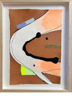 This minimalist Scandinavian painting is made on handmade Indian paper, where the pink background with the lime green bright motif forms a calm and natural base for the graphic, colorful motif. The painting balances between abstract and graphic expression, where the bright colors and simple composition draw the eye towards its subtle but powerful details. The artwork is unique, as it only exists in one copy. It is painted with acrylic and framed in an elegant and deep oak frame, which adds a warm and sophisticated edge to the work. This delicate combination of materials and colors creates a harmonious and timeless aesthetic that emphasizes the Scandinavian design principle of simplicity and natural beauty. All measurements include the beautifully handmade frame, making the painting ready to hang as an elegant statement piece in any room.